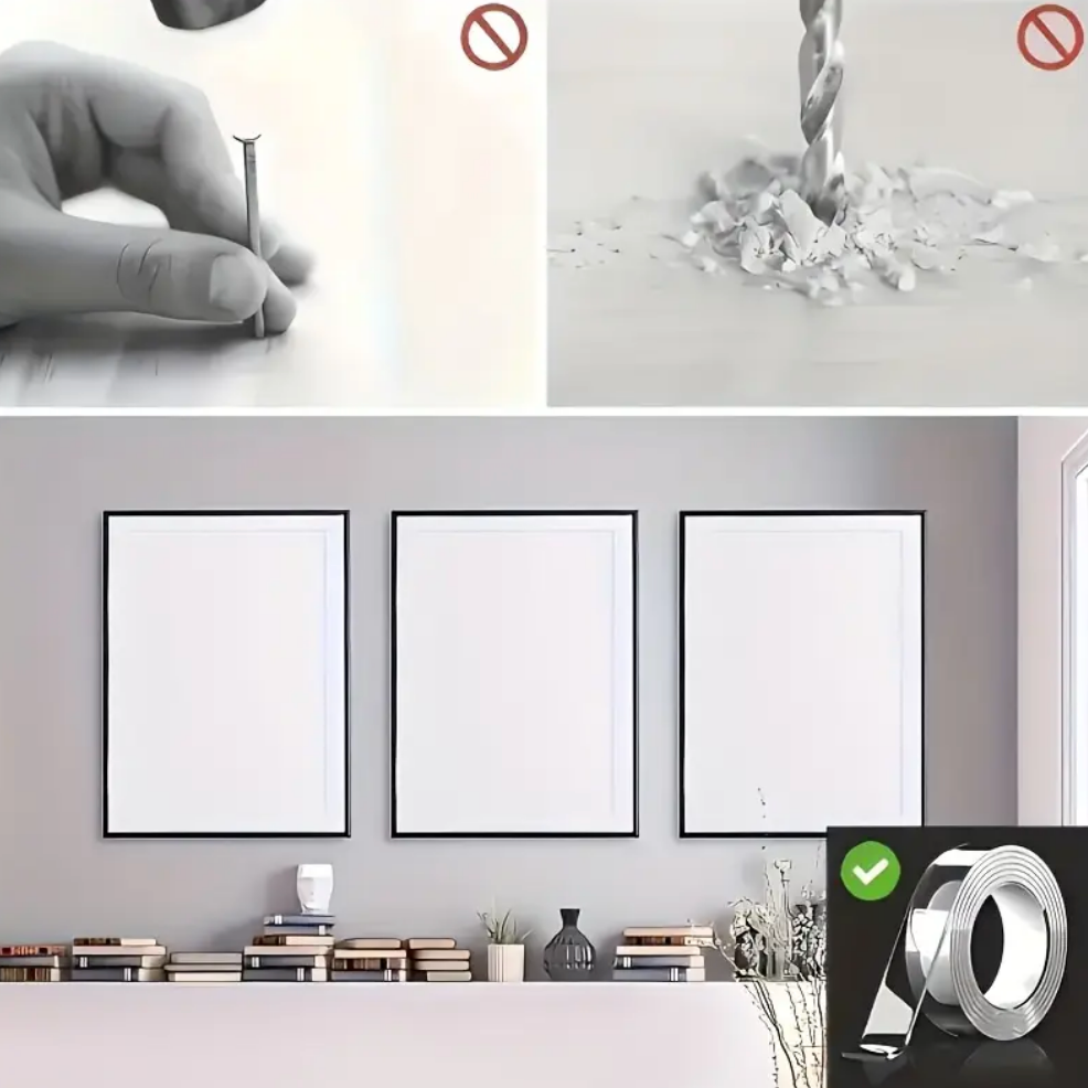 Descubre la Cinta Mágica, la forma más práctica y limpia de fijar lo que necesites. Con su potente adhesión podrás colgar cuadros, sujetar cables o decorar sin ensuciar ni dañar nada.